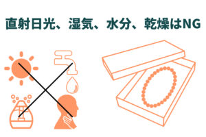 真珠はケースに入れておいても、長期間使わなかったりすることで湿気を含んだり乾燥にさらされたりして劣化することもあります。 そのため、使った後ケースへ保管する前にお手入れをするかしないかによって、真珠をキレイに保てるかそうでないかが決まってしまいます。
