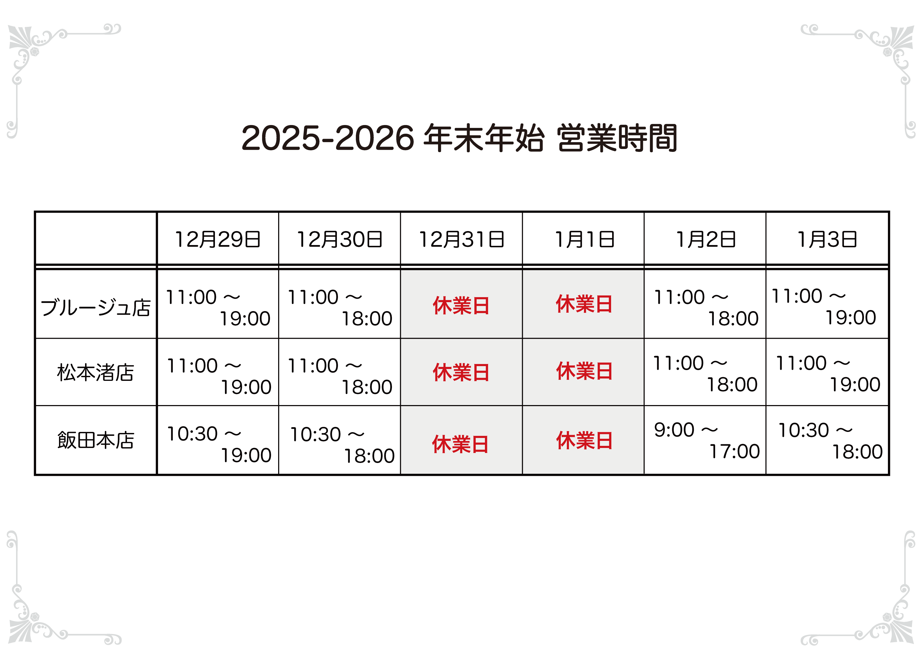 2026年1月4日(日)より、全店通常営業とさせて頂きます。