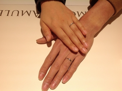 デザートのマリッジリングとエンゲージリングをイエローゴールドでお作り頂きました。