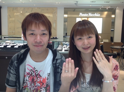 デザートのマリッジリングとエンゲージリングをイエローゴールドでお作り頂きました。