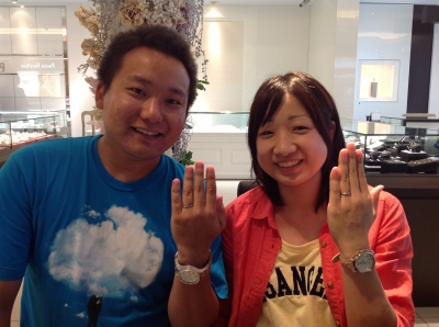 デザートのマリッジリングとエンゲージリングをイエローゴールドでお作り頂きました。