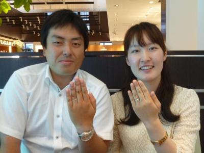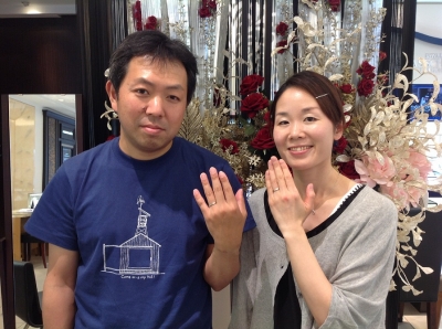 デザートのマリッジリングとエンゲージリングをイエローゴールドでお作り頂きました。