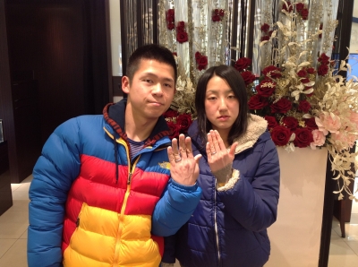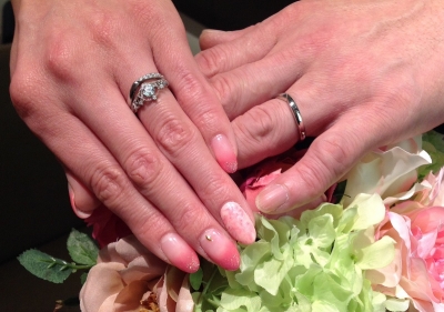 デザートのマリッジリングとエンゲージリングをイエローゴールドでお作り頂きました。