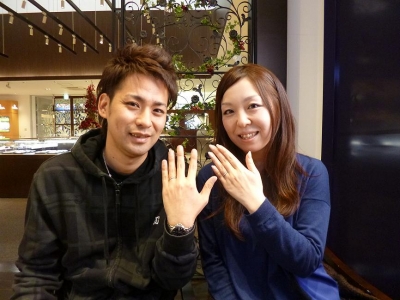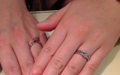 デザートのマリッジリングとエンゲージリングをイエローゴールドでお作り頂きました。