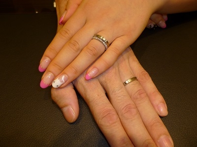 デザートのマリッジリングとエンゲージリングをイエローゴールドでお作り頂きました。