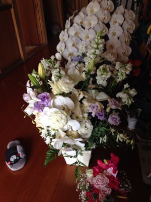 ちなみに我が家、法事やなんやらが重なって玄関が花だらけ