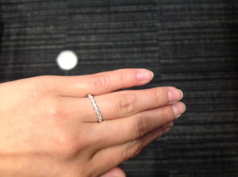 ジュエリー 記念に♡ 投稿者: 1sd 投稿日: 2014年6月9日 こんにちは 松本渚店の小松です 今日は、暑かったり、雷がゴロゴロなったり・・・ なんだか不安定な天気です 雲が凄い明日は、天気になるといいな〜さてさて、今日は、ジュエリーをご紹介最近は、記念日にとジュエリーを見に来られるご夫婦の方がたくさんで、とても嬉しいですそれとともに、そんな優しいご主人様は素敵だな!!と思います!!やっぱり記念日とかをお祝いできる優しさ、思いやりって大切ですよねそこで人気なのは、今つけているご結婚指輪と重ねつけができる、エタニティーリングこちらは、半分のハーフエタニティー!!ダイヤモンドの輝きがとっても綺麗真っ直ぐタイプなので、どんなリングにも合わせやすいですゴージャス!!こちらは、K18 WG ¥102,300-プレゼントにいかがでしょうか他にもいろいろございますので、是非お出かけください