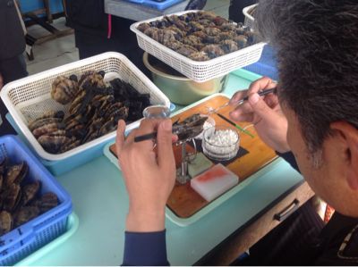 また、それぞれの小さな会社が、母貝管理や核挿入など一つの作業工程のみ行っているそうです