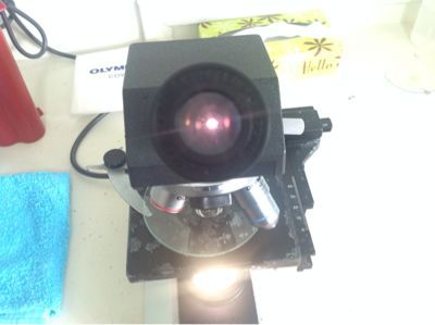 顕微鏡でセットし
