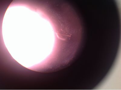 なんとわずかに 光の右側見えますでしょうか❓ うっすらと200ミクロン(1ミリの5分1)の小さな稚貝が…
