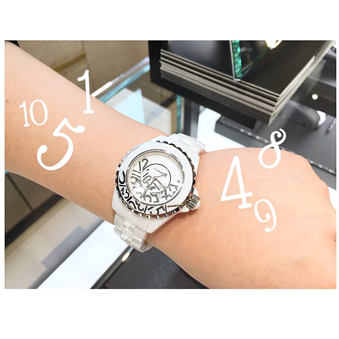 文字盤上の数字が溢れ落ちた様子を表現したデザインでアーティスティックな1本です