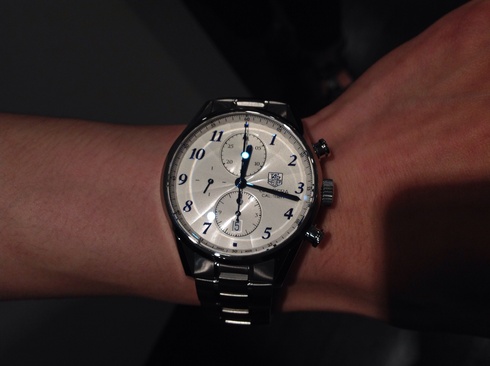 ブルーの指針、そして手を動かすとシルバーの放射状の模様が色合いを変えステキです