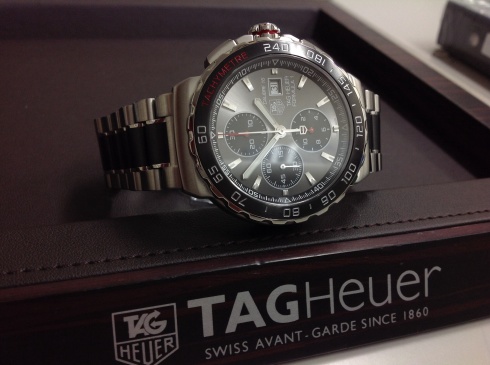時計 📛タグホイヤーとフォーミュラ1 投稿者: 1sd 投稿日: 2014年8月30日 こんにちは、松本渚店の竹内です☺︎ いよいよ本日から、TAGHeuerフェアが始まりました。 カレラ、自動車レース、歴史を感じます 今回は、人気のクロノグラフから、逸品をご紹介します 「フォーミュラ1 SS/セラミック オートマティック クロノグラフ」 フォーミュラ1シリーズに待望の自動巻きが登場です ベゼルとブレスのセンターが、マットセラミックで上質に 44mmの大型ケースは、200m防水で堅牢性も充分 ¥378,000(税込) カレラシリーズとは違う、重厚感が溢れる一品です