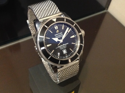 時計 人気の!! 投稿者: 1sd 投稿日: 2014年9月19日 こんにちは 松本渚店の小松です あっという間に9月も半ば・・・早いものです って、こんな感じで毎回言っている気がしますが、本当に時間が過ぎるのは早い!! みなさんはどう感じますか?? さて、先日もお求め頂きました、只今人気の絶頂の時計をご紹介 それが、ブライトリング!! 特にこのスーパーオーシャン ヘリテージというシリーズは、とても人気です!! シンプルな文字盤に、アンティークなテイストのベルト!!キメが細かいこのベルトは、つけ心地もとても良く、傷も目立ちにくいいい事ばっかりです実際に付けてみると雰囲気も全然違いますので、是非一度お出かけくださいませ!!