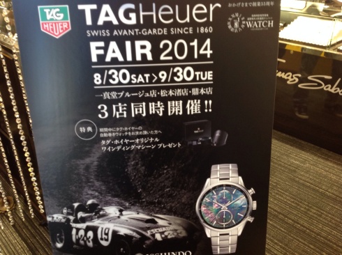 時計 あとわずか…! 投稿者: 1sd 投稿日: 2014年9月28日 こんにちは。松本渚店の竹内です☺︎ 現在、一真堂では、TAG Heuerフェアを開催しておりますが、 大変なご好評の中、終了が近づいてまいりました。9/30まで…!あとわずかの期間ですワインディングマシーンもカッコ良く、大変好評です!ぜひ期間中にご覧ください