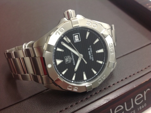 時計 新作、実物がカッコいい件 投稿者: 1sd 投稿日: 2014年9月30日 こんにちは、松本渚店の竹内です☺︎ TAG Heuerの新作入荷です! 「アクアレーサー 自動巻き 300m」 従来のモデルのスタイリッシュさはそのままに より精悍な顔つきになりました 文字盤はより奥行きが深くなった印象 インデックスも太く視認性が増しました 防水服の刻印も健在 ¥259,200(税込み) やっぱり写真より本物がカッコいいですね