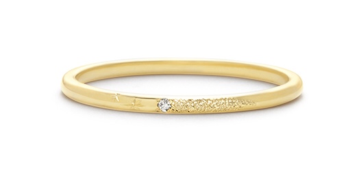 華奢なリングの上に夜空の星が流れている様子を彫りとダイアで表現しています