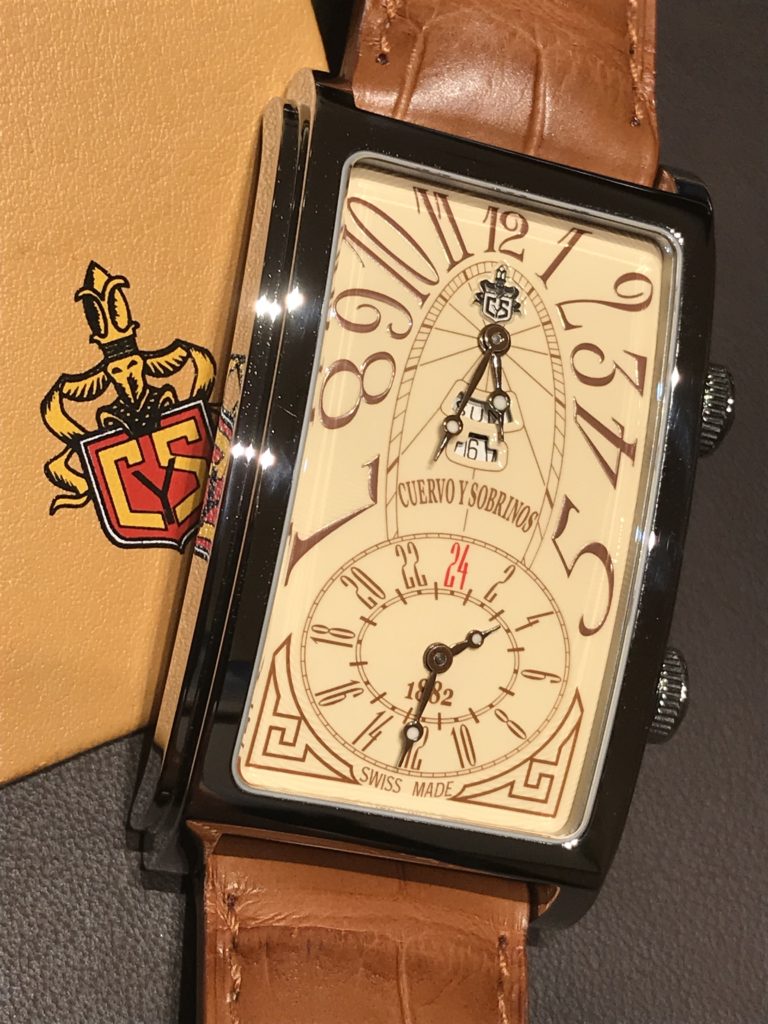 本日ご紹介するのはこちらの時計…CUERVO Y SOBRINOS(クエルボ・イ・ソブリノス)の「プロミネンテ デュアルタイム」!