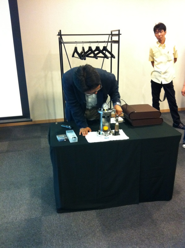 気圧のテスト中です!中にピンポン玉が入ってまして、水圧がかかると~