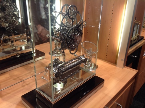 2015バーゼルレポート最新情報 バーゼル会場で気になった様々な時計② 投稿者: 1sd 投稿日: 2015年3月21日 続いて川口が気になったのは…腕時計から少しはなれて、クロック!!! 150年以上前にフランスにて創業し、世界の偉人に愛されてきた… 「L’EPEE」(レペ) クロックの下にオルゴールが一体化した逸品 他にも!芸術品ですね!!こちらはトゥールビヨンが搭載されているそうです。そして…UFOをイメージしたものや、出ました!!!ロボット型クロック♫左手が外れて、背中に差し込んでゼンマイを巻いているようでした!どれも数百万円〜数億円のもののようですちなみに…レペのクロックについては許可を得て動画も撮ってきたので、ご興味のある方は25日以降にリッツ店にお越しください♬