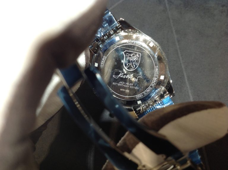 裏蓋にはホイヤー家の紋章と、ジャック・ホイヤーの