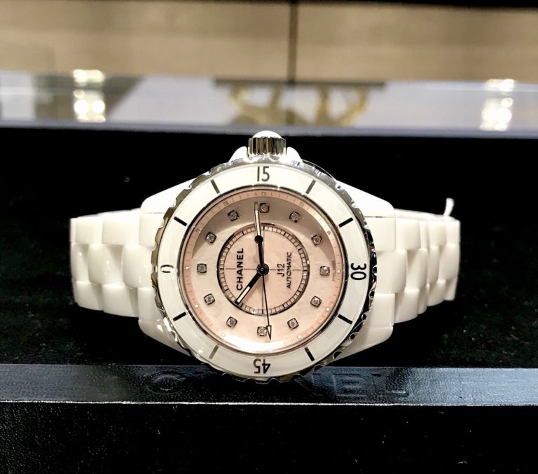 ピンクシェルの文字盤が綺麗でオシャレな新作のJ12は、ほんのり淡い桜の花のような雰囲気で素敵です!