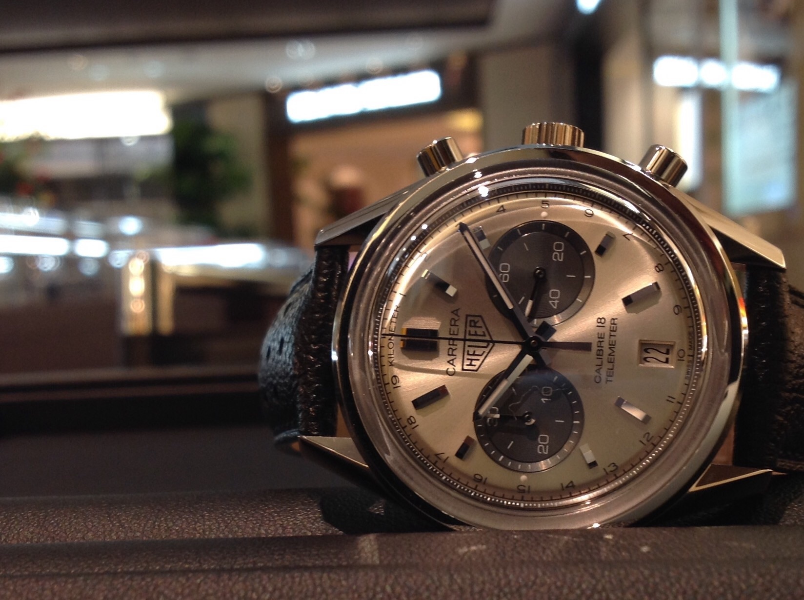 時計 タグホイヤー2015年新作モデル 投稿者: 1sd 投稿日: 2015年12月7日 こんにちは、米澤です。 今日もタグホイヤーの新作を紹介します。 今日ご紹介するのはヴィンテージ感あふれる逸品 タグホイヤー カレラ キャリバー18 クロノグラフ ¥615,600(税込) 39mmのサイズにシルバー文字盤、まさに大人の時計です。 アントラサイトのツーカウンターとのバランスもGOOD レトロな時計が好きな方にオススメです ボックス型のサファイヤクリスタルがヴィンテージ感をUP シックな表情がたまらない一本。