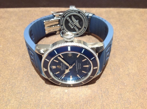 時計 魅力のヘリテージ、カラーバリエーション 投稿者: 1sd 投稿日: 2016年2月16日 こんにちは、松本渚店の竹内です☺︎ ブライトリングの人気モデル、 スーパーオーシャンヘリテージのブルーカラーが入荷しました 1950年代の初期モデルをオマージュ 現在の技術で送り出されたモデル エンブレムも当時のデザインを採用 針やリューズの形状もレトロな仕上がり ベーシックなブラック以外に、ブルーも人気のカラーです。 今回は、ラバーストラップもブルーで統一です。 表面に浮き出る「BREITLING」ロゴがカッコいいです。 伝統のデザインに、最新の技術の組み合わせ 歴史を感じる一本です。
