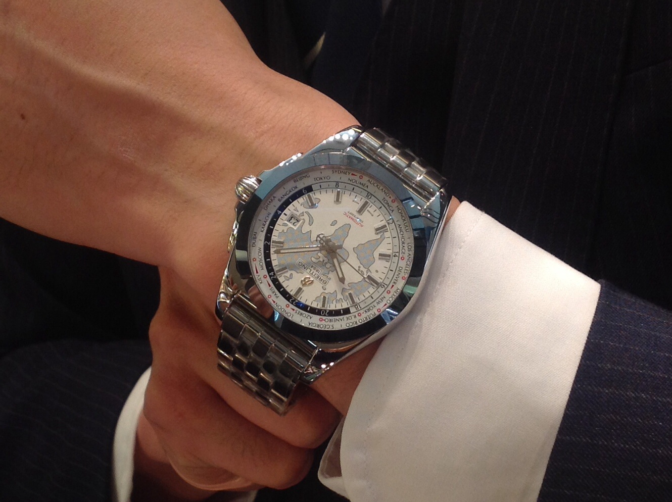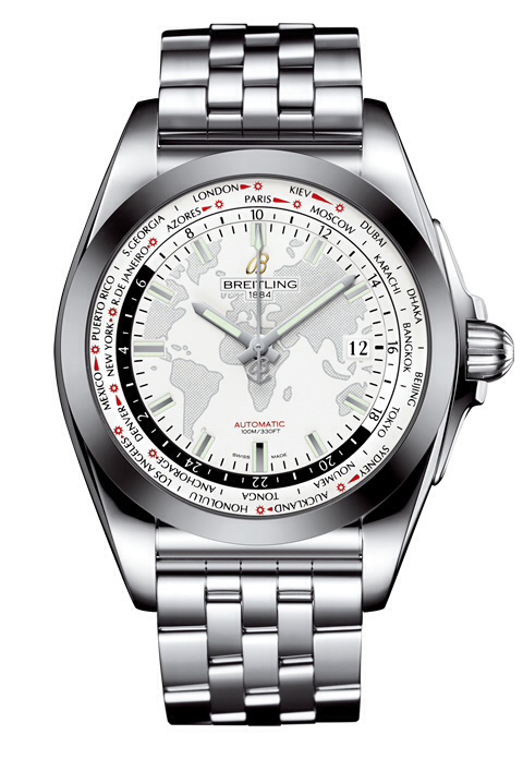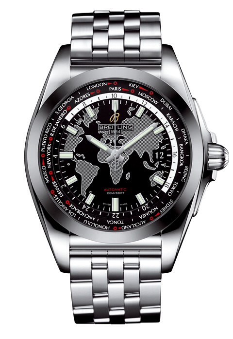 文字盤に世界地図がデザインされ、インデックスの外側には世界の主要24都市の時間を同時に読み取れる都市名リングの搭載された革新的なモデルです