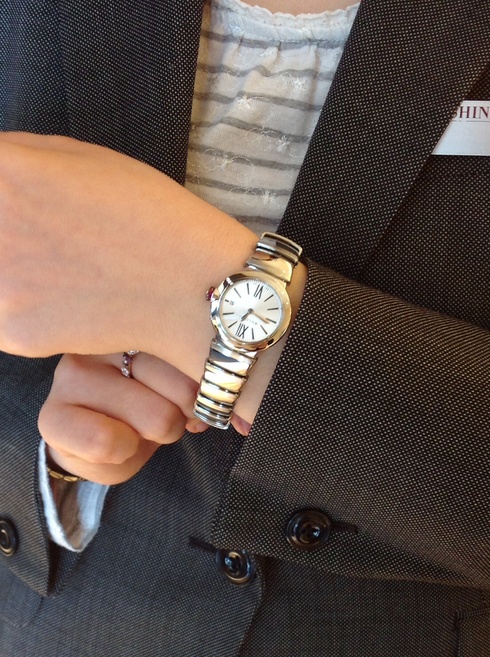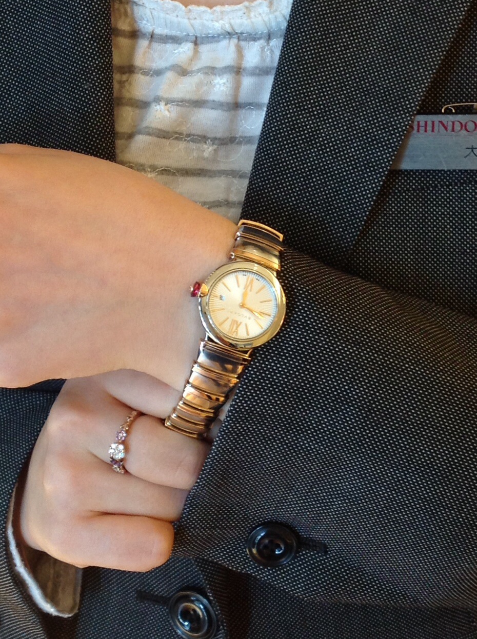 デザインもブルガリのハイジュエリーからヒントを得てリューズにピンクストーンを、ブレスのデザインはブルガリのアイコンであるセルペンティから、ブルガリの考えるデザイン性が凝縮されたモデルです