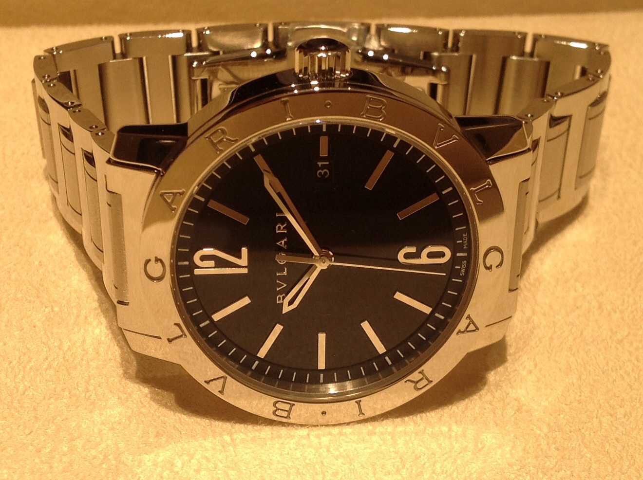 ベゼル部分にブルガリのロゴがぐるっと入るブルガリのアイコン的有名なモデルです