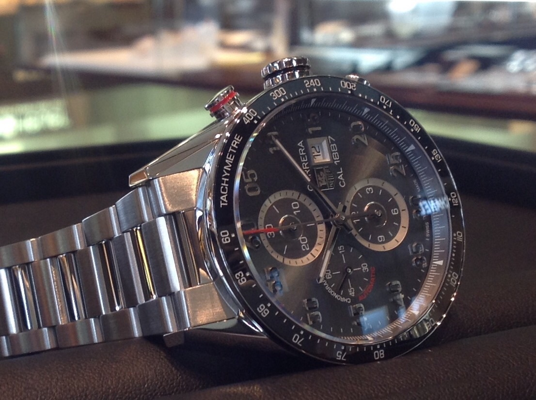 時計 スポーティな高級時計 投稿者: 1sd 投稿日: 2016年4月14日 こんにちは、米澤です。 春になり、新生活を始めた方も多いのではないでしょうか😄 新たな生活に向けて今日はタグホイヤーの時計をご紹介します‼️ タグホイヤーらしいスポーティなモデル セラミックベゼルと光沢のあるアントラサイト(グレー)が高級感ある雰囲気に。 タグホイヤー カレラ キャリバー1887 ¥567,000(税込)