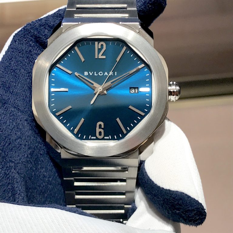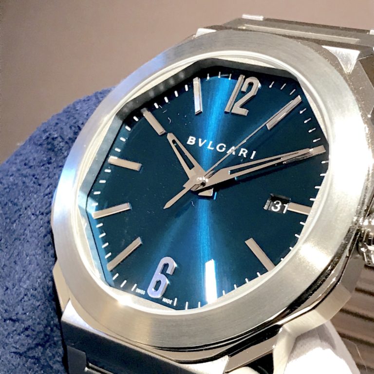 「オクト ローマ」…美しい青が特徴的ですね。青い地中海の海を思わせる素敵な色です。ブルガリは古くから「色の魔術師」と呼ばれており、様々な色の組み合わせでハイセンスな作品を次々生み出すことで有名です。