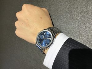 すっきりとした顔立ちのクロノグラフは、シンプルながらも高級感があり、