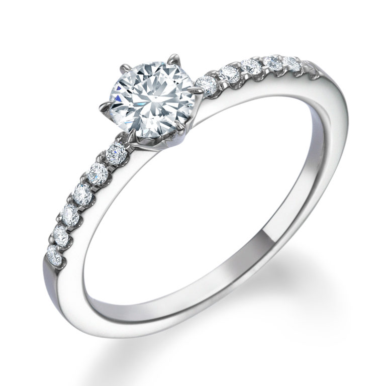 中心のダイヤモンドに加え両脇にダイヤモンドがセッテイングされているモデルはサイズ直し幅が狭くなります。