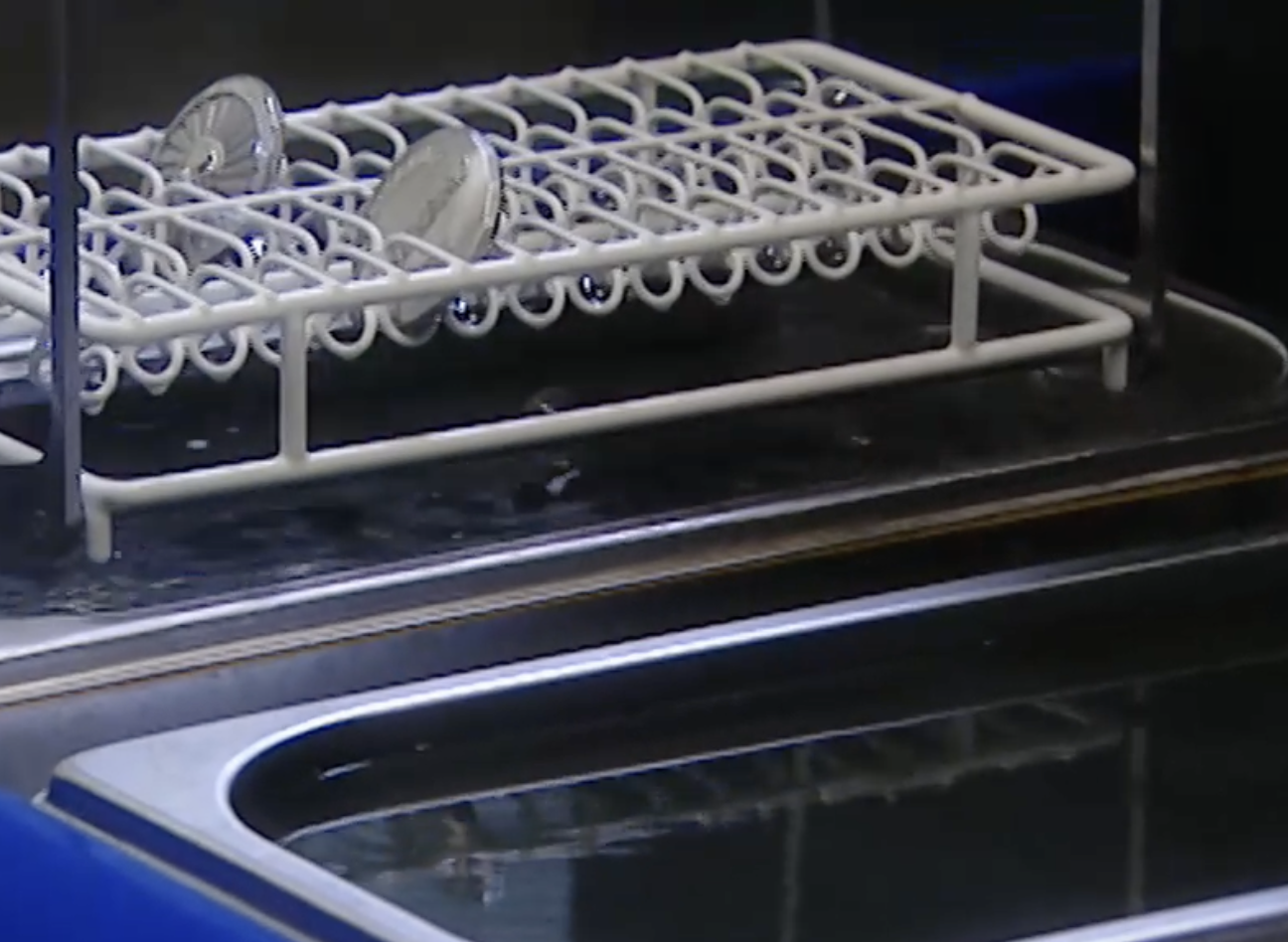 ケーズやムーブメント、ブレスレットの洗浄では、専用の洗浄液で3段階にわたって汚れを洗浄します。