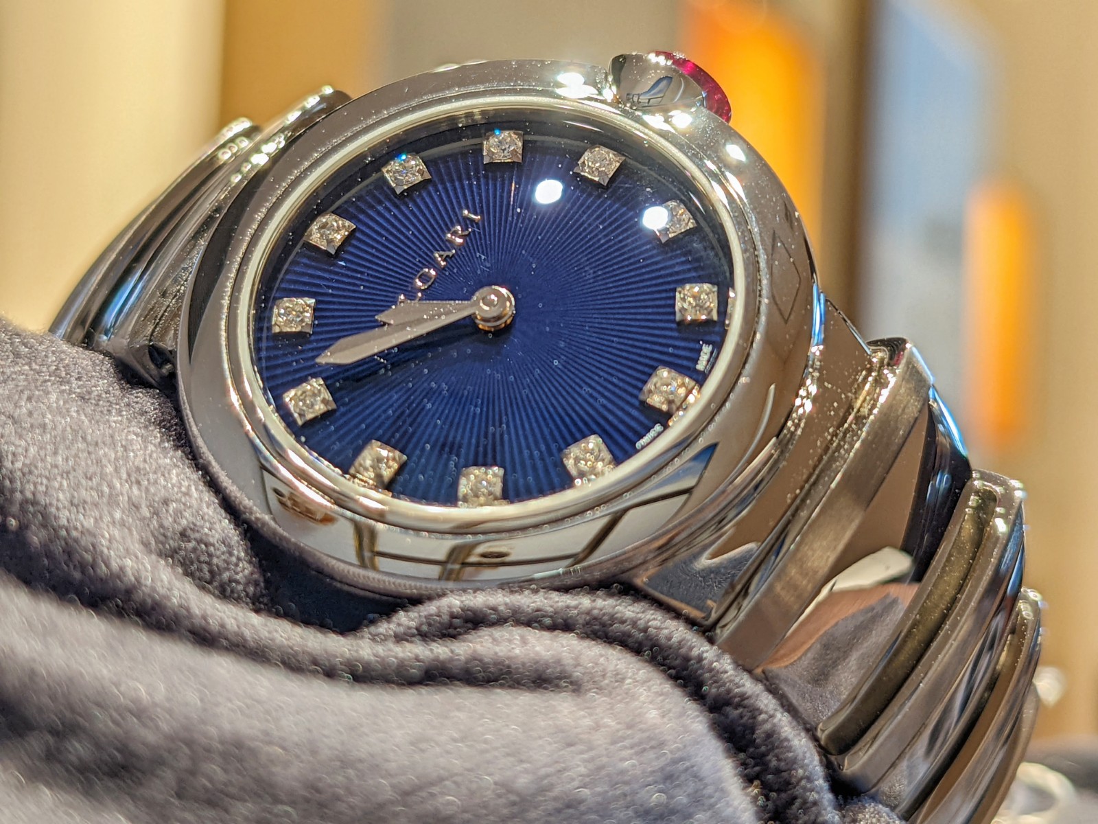 ブルガリの宝飾技術が存分に盛り込まれ細部にまで宿る作り込みの美しさは時間を見るたび幸せにしてくれます。