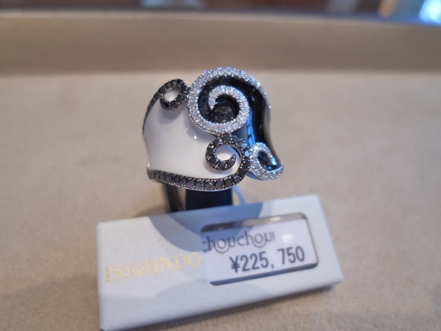 モノトーンの幅広リングは、エナメル使いでカッコよく