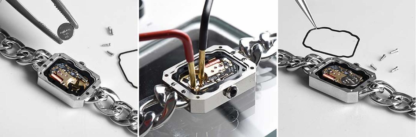 革紐交換の際には、その工程上、電池交換サービスも合わせて実施。