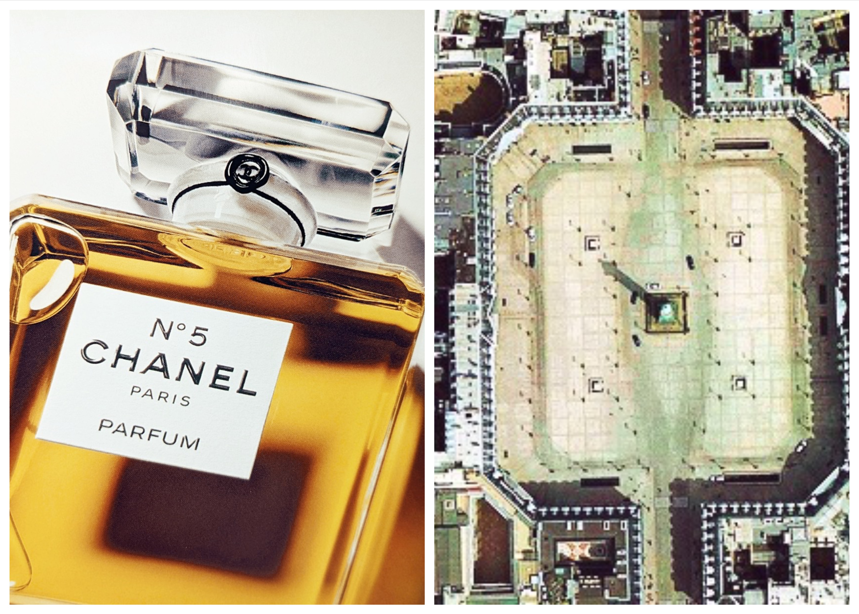 シャネル N°5のボトルストッパ―とヴァンドーム広場の形から着想。