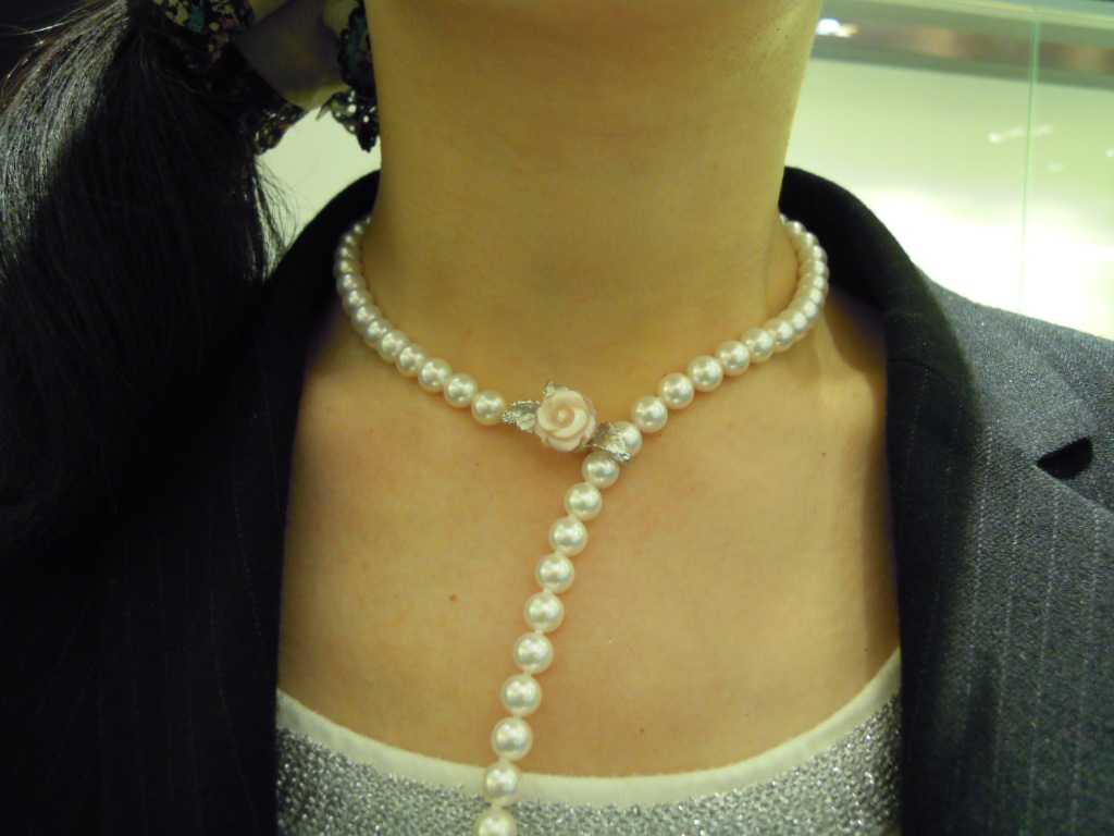 長さの調節も自由自在、自分の一番良い位置でパールをつけることができます。