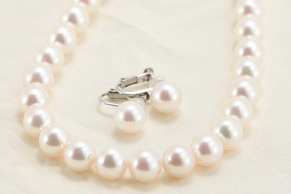 特に上質なパールは、真珠層の巻きが厚く丁寧につくられているため、一粒一粒に美しい色や艶(テリ)があらわれます。また、耐久性に優れており、表面の光沢が失われにくいという特徴があります。