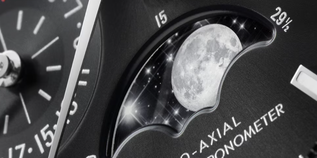 アポロ計画で月面着陸に帯同した「ムーンウォッチ」の血統。通常の59枚歯ではなく、より細かい135枚歯の月齢ディスクを採用することで、なんと「約122年に1度」しか調整を必要としません。時計が動き続ける限り、オーナーの生涯にわたって真の月の姿を刻み続けます。