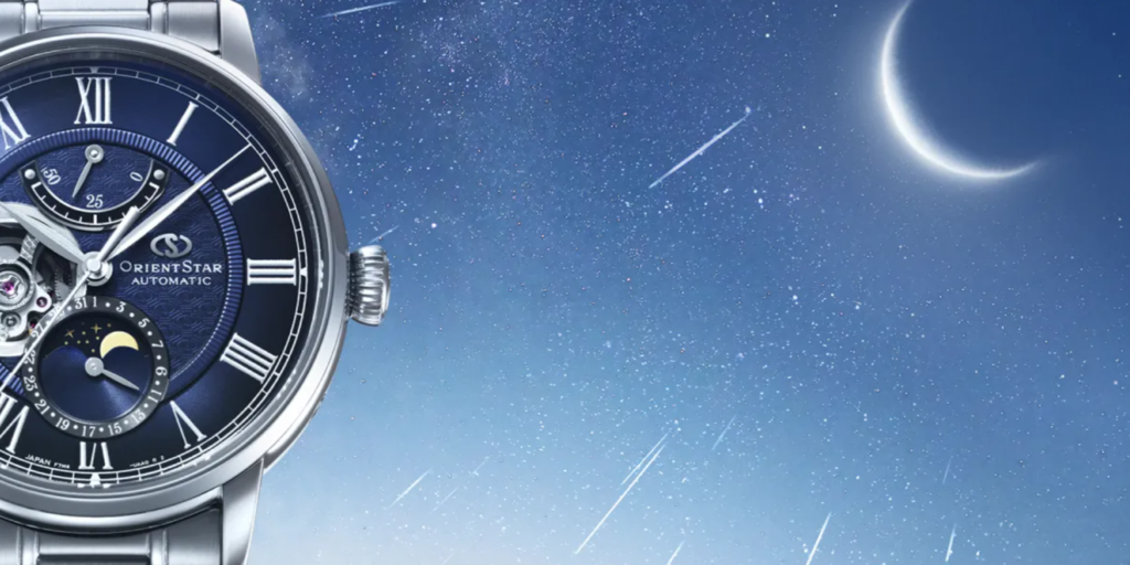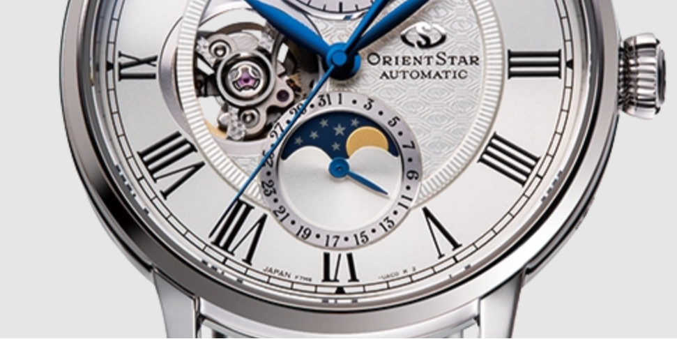 1951年に誕生したオリエントスター。数あるコレクションの中で、ムーンフェイズとポインターデイト、さらにパワーリザーブインジケーターを搭載した、ブランドのフラッグシップモデルです。