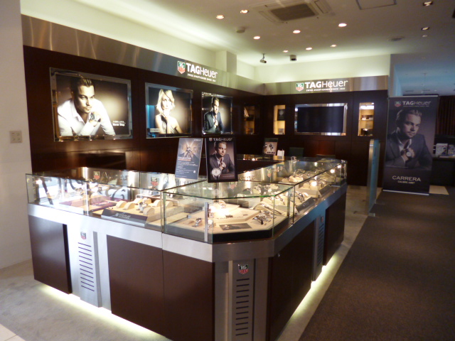 こちらブルージュ一真堂タグホイヤーブース 常時100本を越える品数でお客様をお待ちしております。