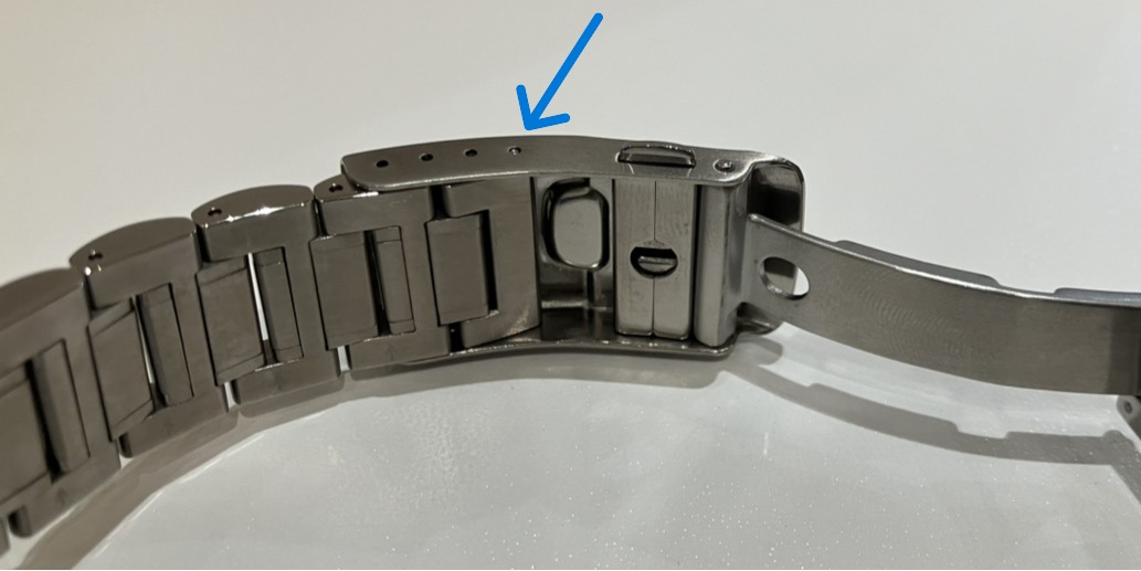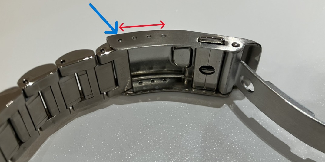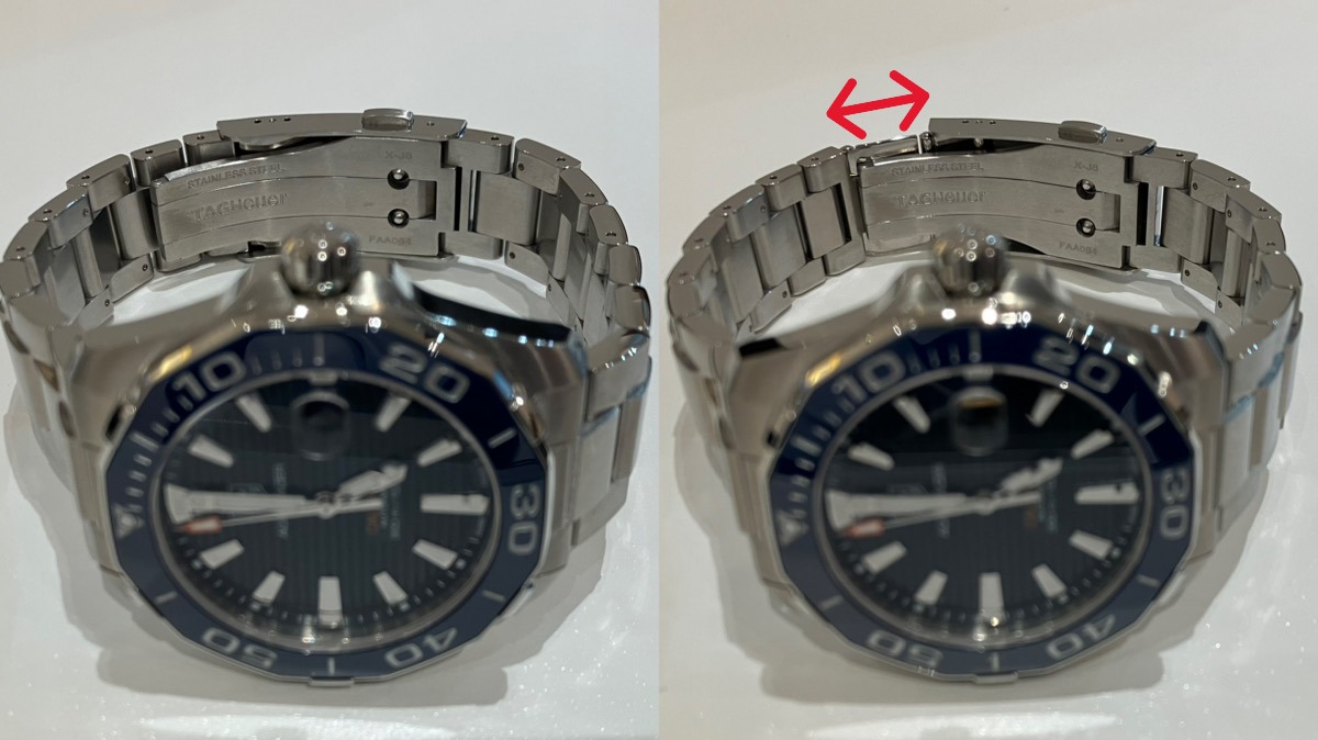 穴の位置で容易に調整できる革ストラップとは異なり、金属製のメタルブレスレットは即座に長さを変えることが難しいのが一般的です。しかし、一部のモデルに備わっている「エクステンションベルト(伸長機能)」を使いこなせば、その悩みは解消されます。