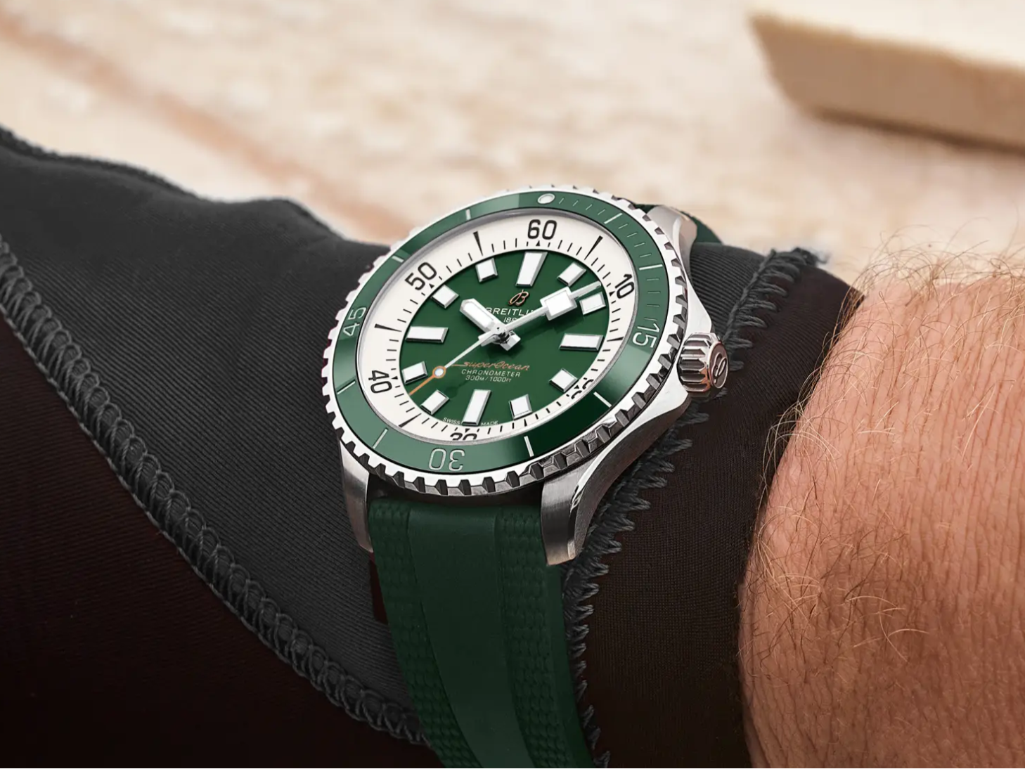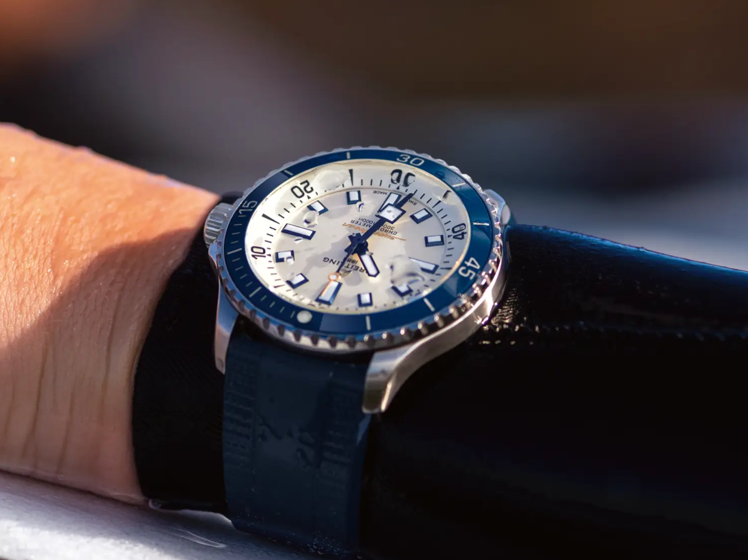 もともとは、陸上での使用に合わせて調整された時計を、ダイビングの際に「ウェットスーツの上から即座に装着できること」を目的に開発されました。