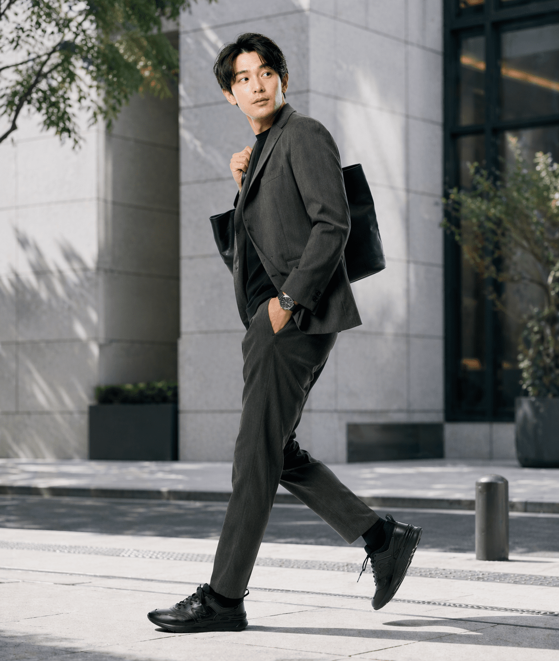 革靴のようにドレッシーな見た目でありながら、スニーカー同様の歩きやすさを備えられることから営業職の方にも人気のスタイルです。