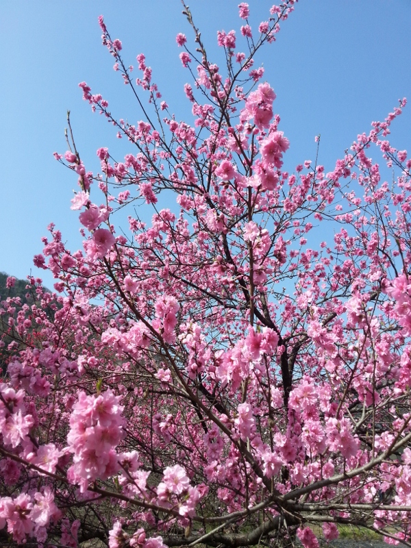 私が行ったときは、ちょうど昼神の花桃が満開で赤・白・ピンクに見事に咲き乱れていました