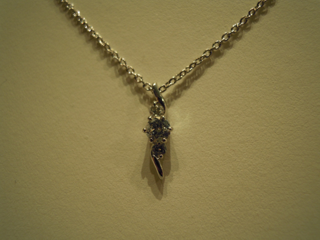 スリーストーンのダイヤのネックレス S字のデザインが優しい感じ
